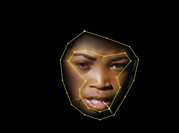 Figure 5: Above we show the vignetted area painted with smaller brush strokes. Note that we also strategically placed the feathering as much as possible in the area of the face that has the least details (the smoothest surface).